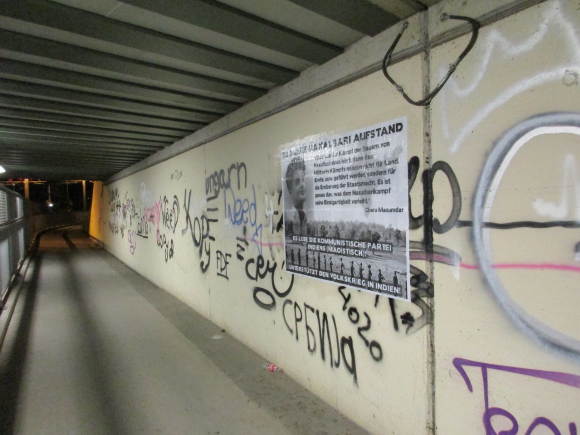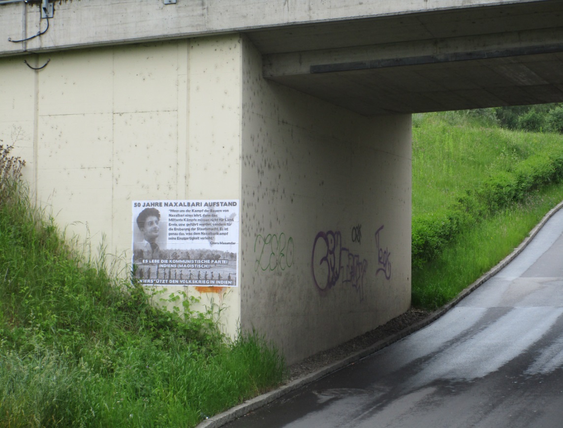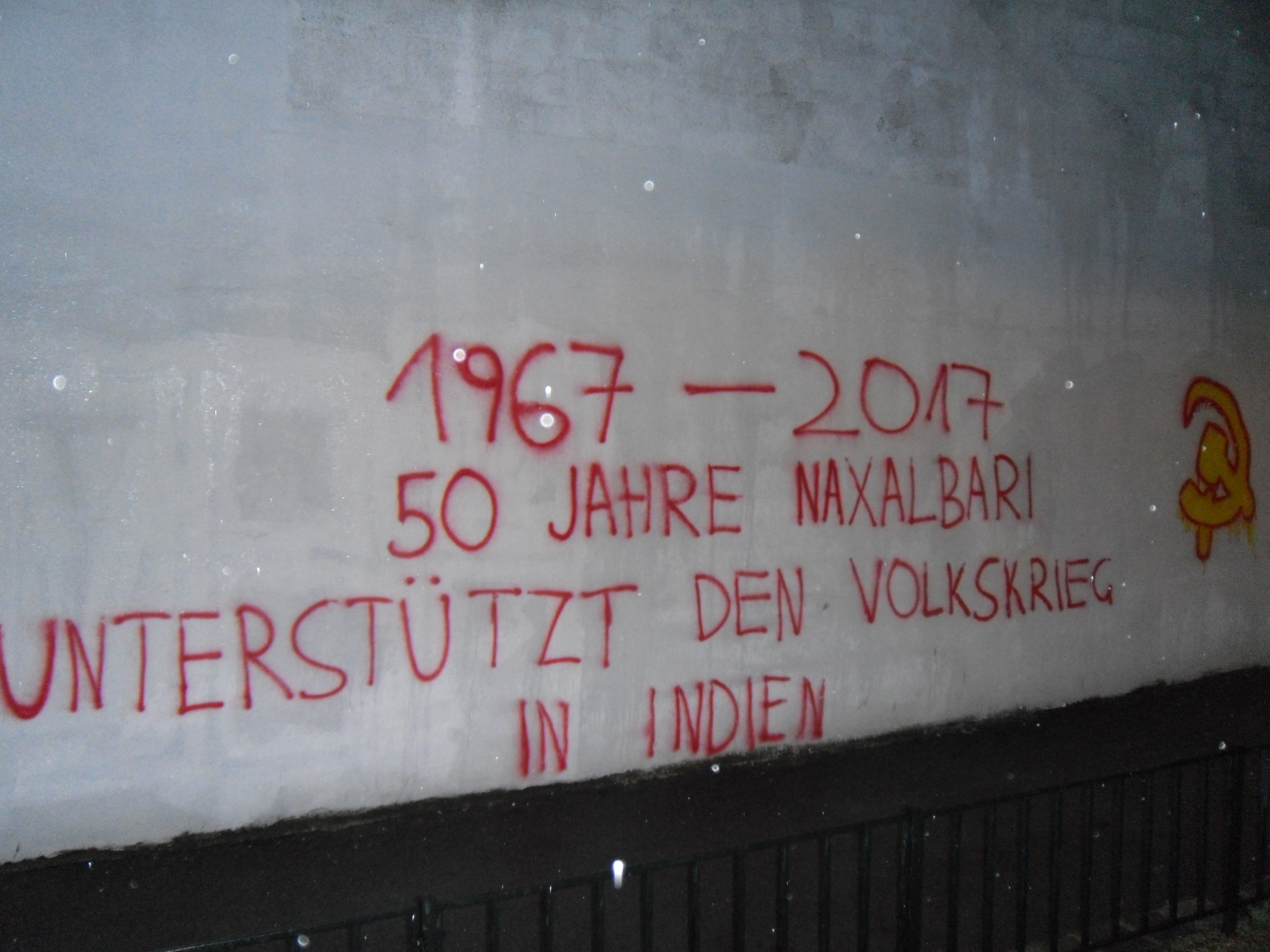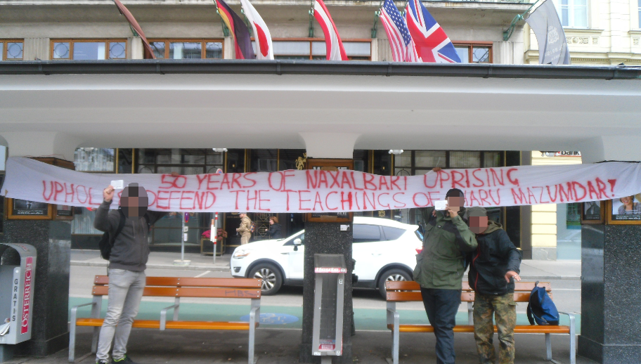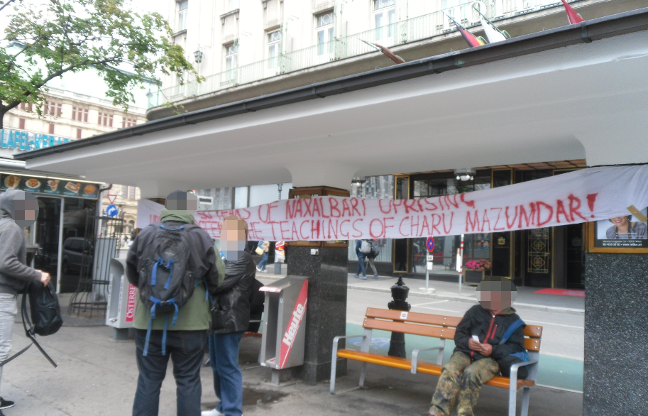 Es wurde eine Aktion vor der indischen Botschaft organisiert, die die Solidarität mit den Kämpfen der Massen in Indien ausdrückte, und sich direkt gegen die Vertreter des reaktionären Indischen Staates in Österreich richtete. Ebenso wurde eine Wandbemaldung gemacht, die dazu aufruft den Volkskrieg zu unterstützen, der heute in der Tradition des wichtigen Naxalbariaufstandes steht.