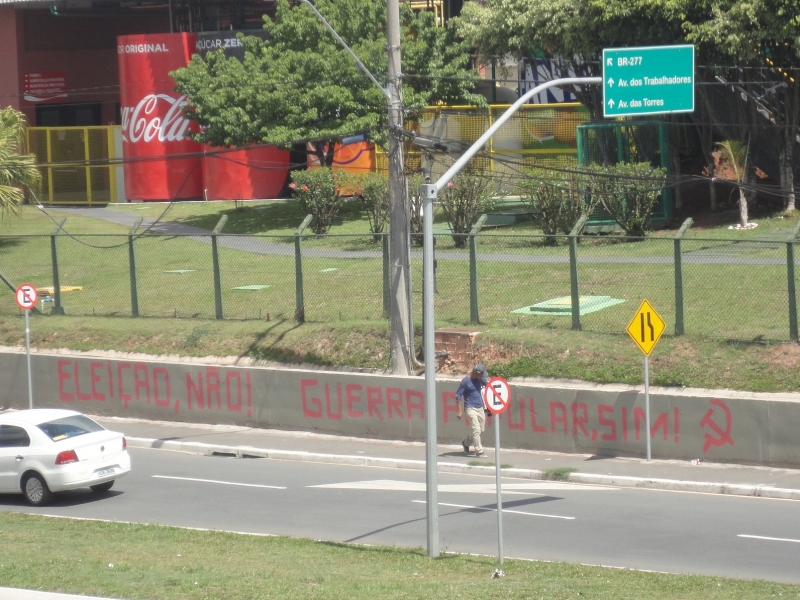 Unter den Slogans „Weder Wahlen, noch Militärintervention – Revolution jetzt“, „Wählt nicht, kämpft für die Revolution“, „Nicht Wählen – Kämpfen!“ und „Wahlen, nein! Volkskrieg, ja!“ hat sich in den letzten Wochen eine massive Kampagne verschiedener Kräfte für den Wahlboykott entwickelt. Landesweit fanden Kundgebungen und Demos statt, wurden Zeitungen verteilt und Wandmalungen durchgeführt. Die Situation in Brasilien reift weiter voran und die heutige Wahl wird einmal mehr bestätigen, dass für einen immer größeren Teil der Massen jede Illusion in das Parlament und eine Veränderung dadurch zerschlagen ist.