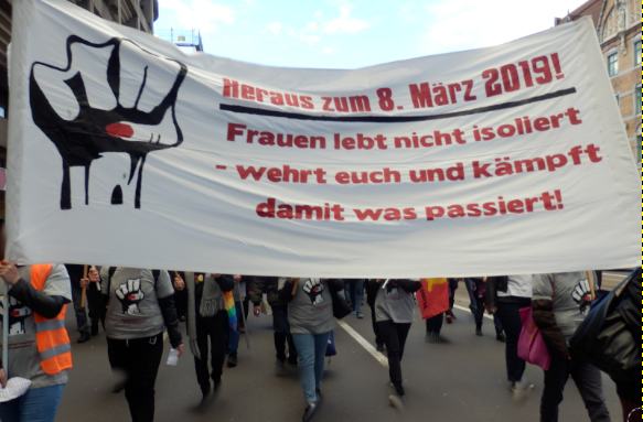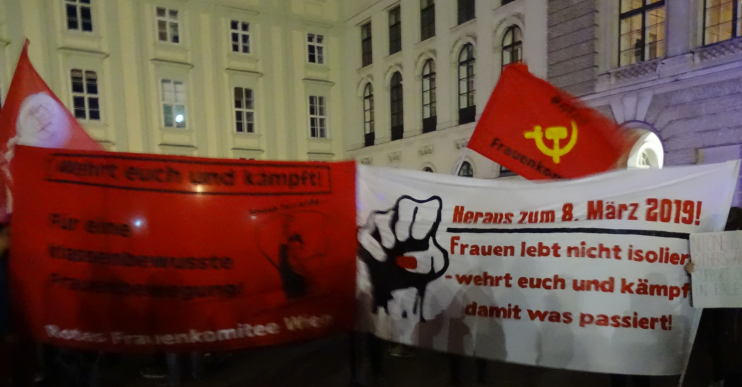 Am 8. März 2019 beteiligen sich in ganz Österreich tausende* Frauen an Aktionen, Demonstrationen und Veranstaltungen. Vor allem die vermehrten Frauenmorde in letzter Zeit haben das Anliegen der Frauen gegen reaktionäre, patriarchale Gewalt in den Vordergrund gerückt und auch die Proteste gegen die aggressive Regierung des Kapitals spiegelten sich in den Demonstrationen wieder. Besonders stachen bei den Demonstrationen in Linz und in Wien die Roten Frauenkomitees hervor, die entschlossen und kämpferisch ein starkes Kontingent an Roter Frauen mobilisierten und für eine konsequente Linie in der Frauenbewegung eintraten: Gegen Patriarchat und Kapital! Um den Kampf der Frauen zu entfesseln riefen sie mit Transparenten dazu auf, sich nicht zu isolieren, sondern sich zu wehren und zu kämpfen.