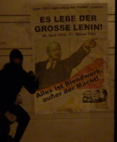 Anlässlich des 150. Jahrestages der Geburt Lenins kamen Revolutionäre in Österreich zusammen um Lenin und sein Werk hoch zu halten. Sie diskutierten Auszüge aus seinen Schriften, da diese wichtige Wegweiser zur Organisierung der Massen am Weg der Proletarischen Weltrevolution sind. Zu Ehren Lenins wurden an belebten Plätzen große Plakate angebracht, mit der wichtigen Losung: „Alles ist Blendwerk, außer der Macht!“