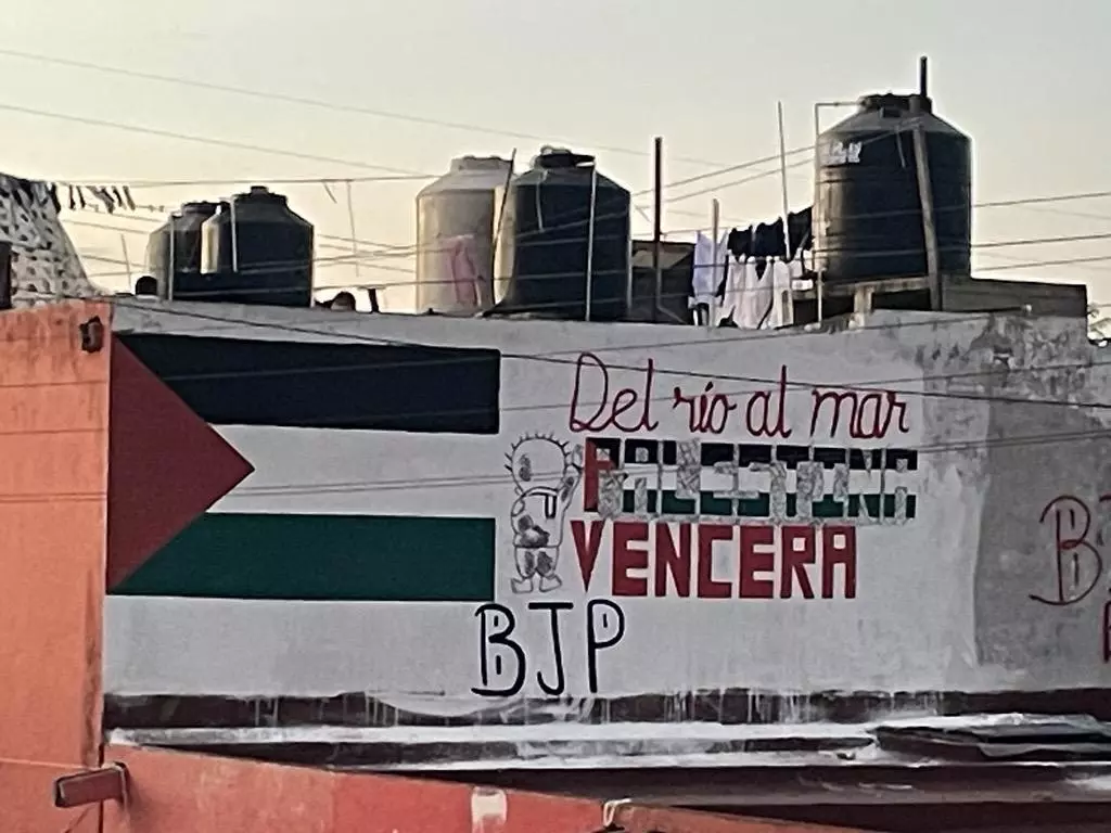 Veranstaltungen gab es auch in Mexiko zur Unterstützung und Solidarität mit dem palästinensischen nationalen Befreiungskampf. Umgesetzt wurde der Aufruf von den Jugendbrigaden des Volkes (BJP), die in einer Basisgemeinde der Organisation von Sol Rojo ein Wandgemälde anfertigten. Es trägt die Aufschrift ‚Vom Fluss bis zum Meer wird Palästina siegen!‘
