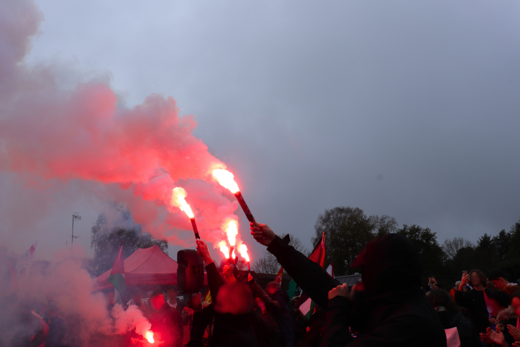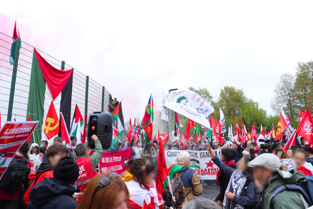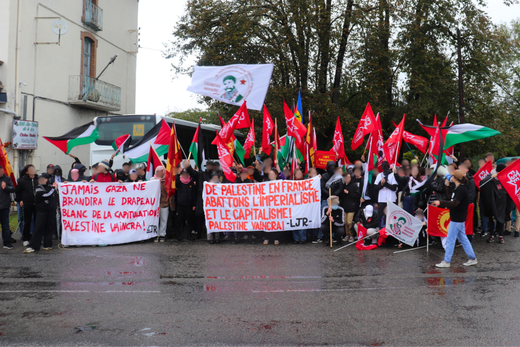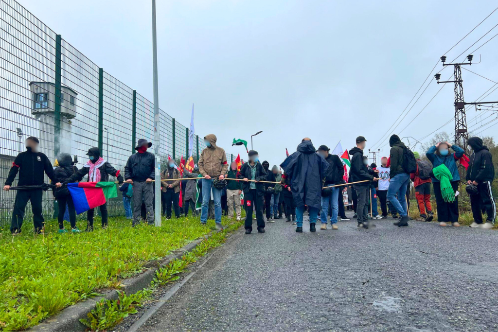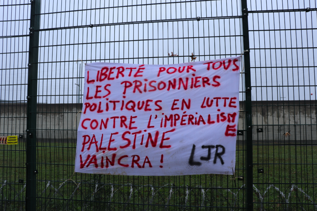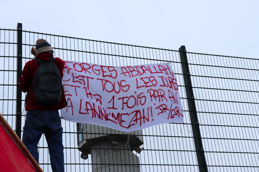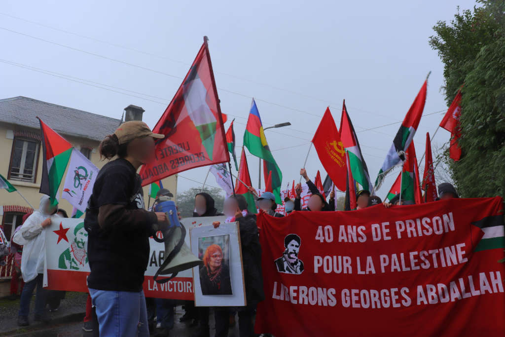 Die Demonstration fand in der Nähe des Gefängnisses von Lannemezan statt und war dem Aufruf der Campagne Unitaire pour la libération de Georges Ibrahim Abdallah (CUPLGIA) gefolgt. Entlang des Zuges und der Gefängnistore fanden eine Reihe von Aktionen statt, angeführt von entschlossenen Aktivisten, unterstützt von der gesamten Demo.