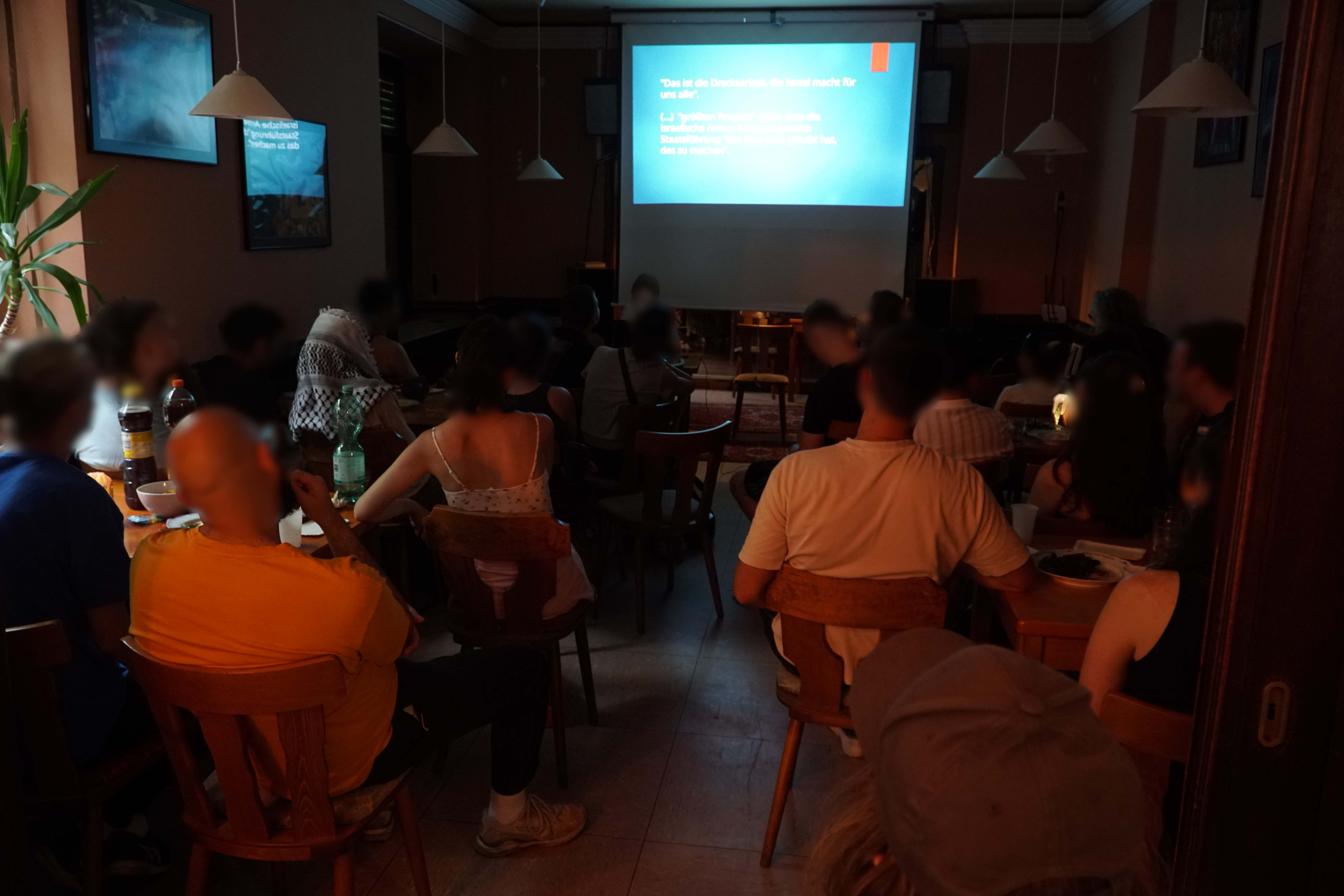 Am 02. Juli fand das monatliche Palästina Café erneut im Kulturhaus Taranta Babu statt. Das von den Teilnehmern des letzten Cafés als Leitfrage gewünschte Thema „Findet ein Wandel in der Gesellschaft bezüglich der Palästina Frage statt?“ wurde in einer kurzen Präsentation beantwortet und anschließend in der Diskussion vertieft.