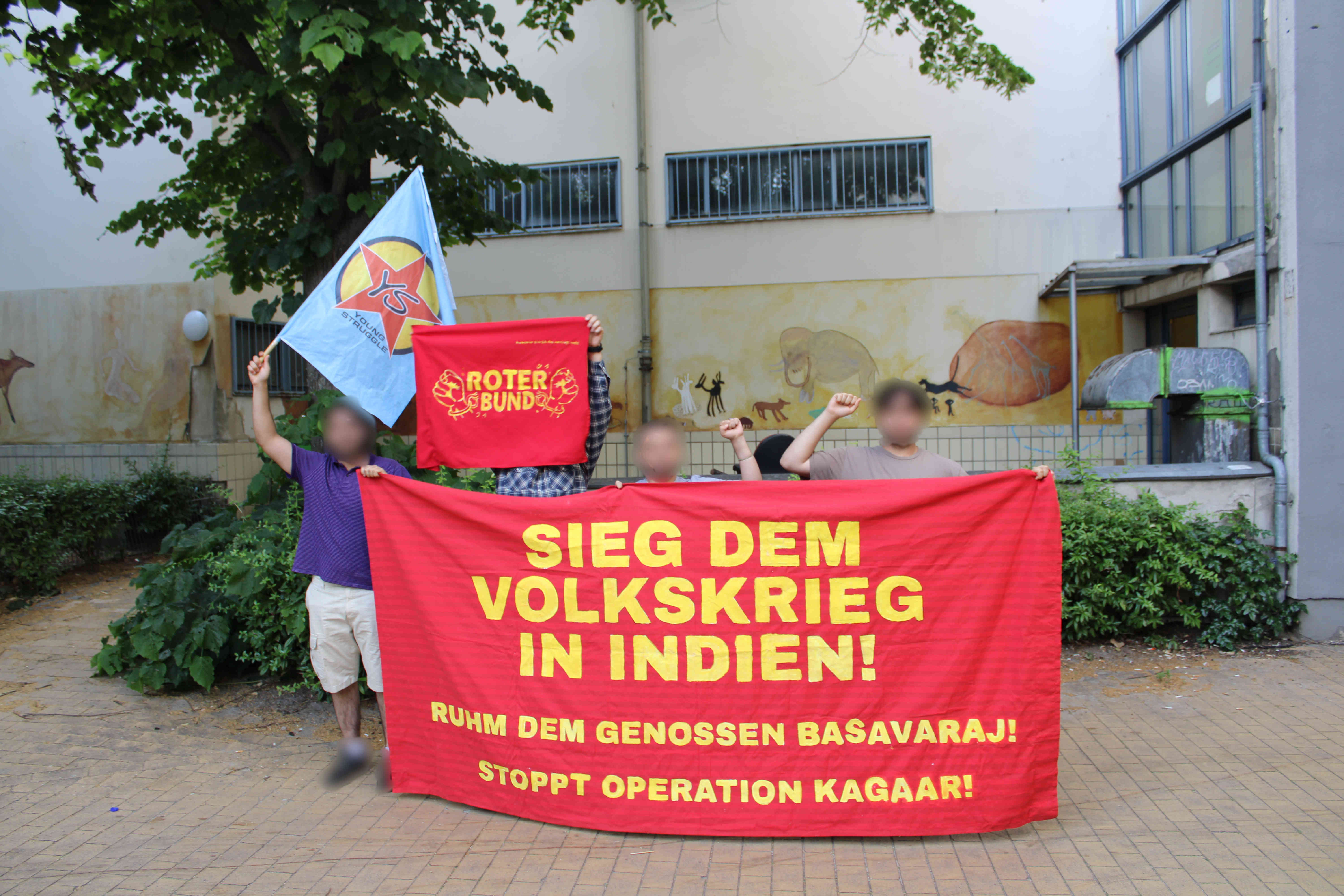 Innerhalb der Veranstaltungsreihe aus Anlass der Ermordung von Genosse Basavaraj und in Solidarität mit dem Volkskrieg in Indien hat am vergangenen Freitag den 4. Juli eine Veranstaltung auch in Berlin stattgefunden, wo es den Genossen von Young Struggle gelang kurzfristig Räumlichkeiten zu organisieren. Gemeinsam mit Aktivisten des Roten Bundes wurde so eine kleine gemeinsame Gedenkveranstaltung organisiert, in der die Rede zur Kampagne verlesen und ein Solidaritätsfoto aufgenommen wurde.