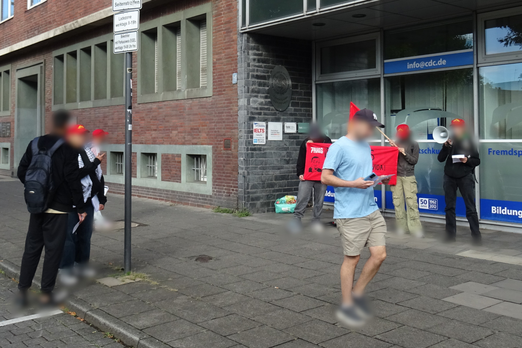 Die Aktivisten des Roten Bundes forderten die lebendige Freilassung von Dr. Ernesto Sernas García und aller Verschwundengelassenen. In Mexico sind über 130.000 Menschen durch den mexikanischen Staat und seinen paramilitärischen Handlager aktuell Verschwundengelassen. Diese Repressionstaktik wird vor allem dafür genutzt den revolutionären Kampf in Lateinamerika zerschlagen. Die mexikanischen Revolutionäre kämpfen jedoch unermüdlich weiter. In Solidarität mit den mexikanischen Genossen denunzierte der Rote Bund NRW diese grausame Waffe gegen das Volk. Das staatliche Suchkomitee in Oaxaca verzögert und behindert die Suche nach den Verschwundenen. So forderten Aktivisten die Entlassung des „Verräters Michel Julián López und aller anderen Kollaborateure in der staatlichen Suchkommission“. Flugblätter wurden an die Passanten verteilt und ein Banner mit der Forderung: #DrSernasPresentaciónConVida wurde während der Kundgebund präsentiert, ein klares Zeichen für proletarischen Internationalismus.