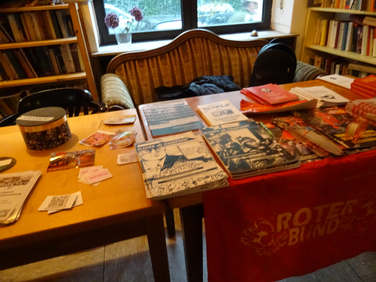 Am 8. Oktober fand in Dortmund das monatliche Palästina-Café statt, welches vom Roten Bund mitorganisiert wird. In dem kurzen Input wurde auf die aktuelle Situation in Palästina und den umliegenden Ländern eingegangen und in der Diskussion von den Teilnehmern der „20-Punkte-Plan“ ausgiebig diskutiert.