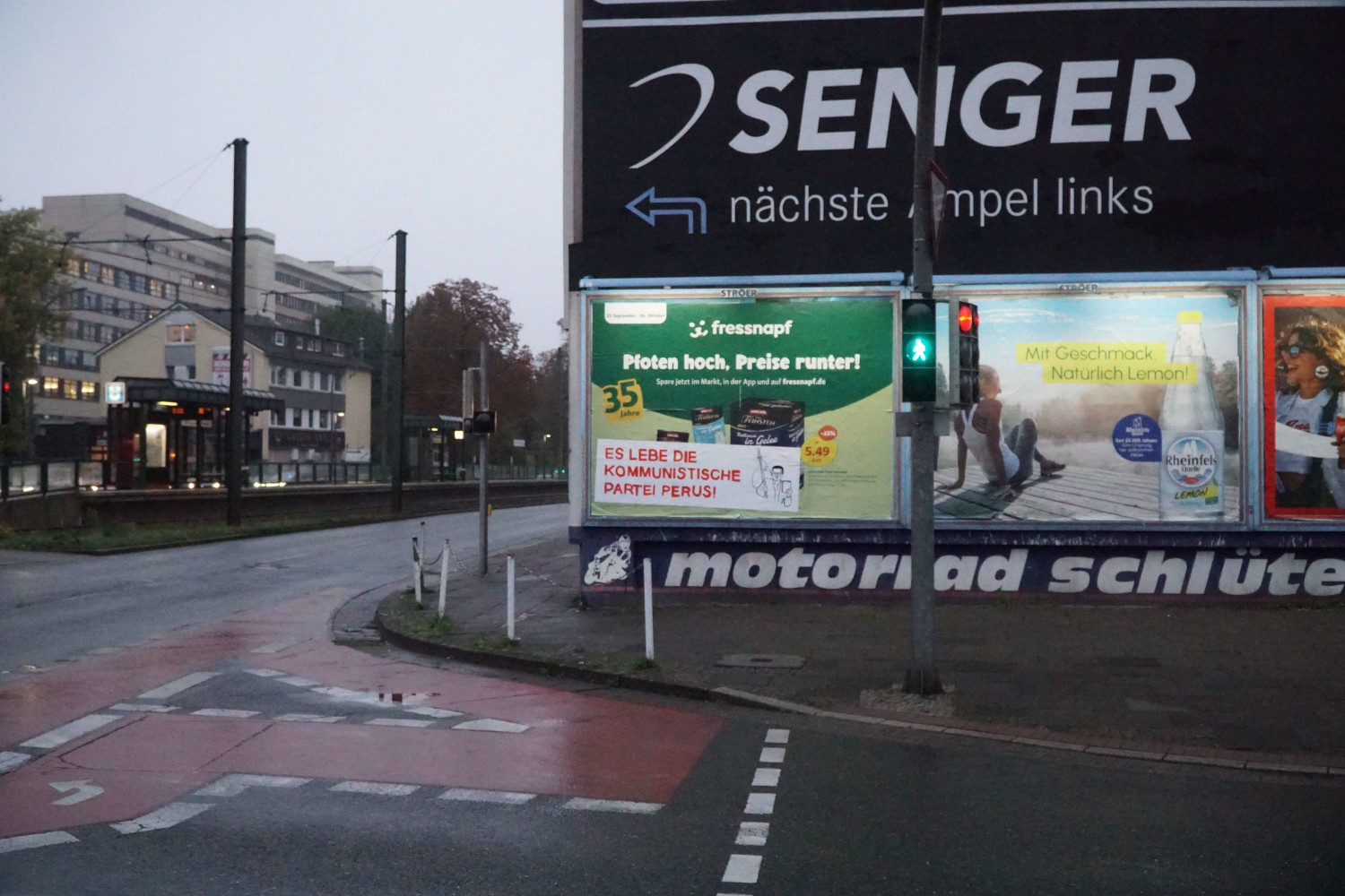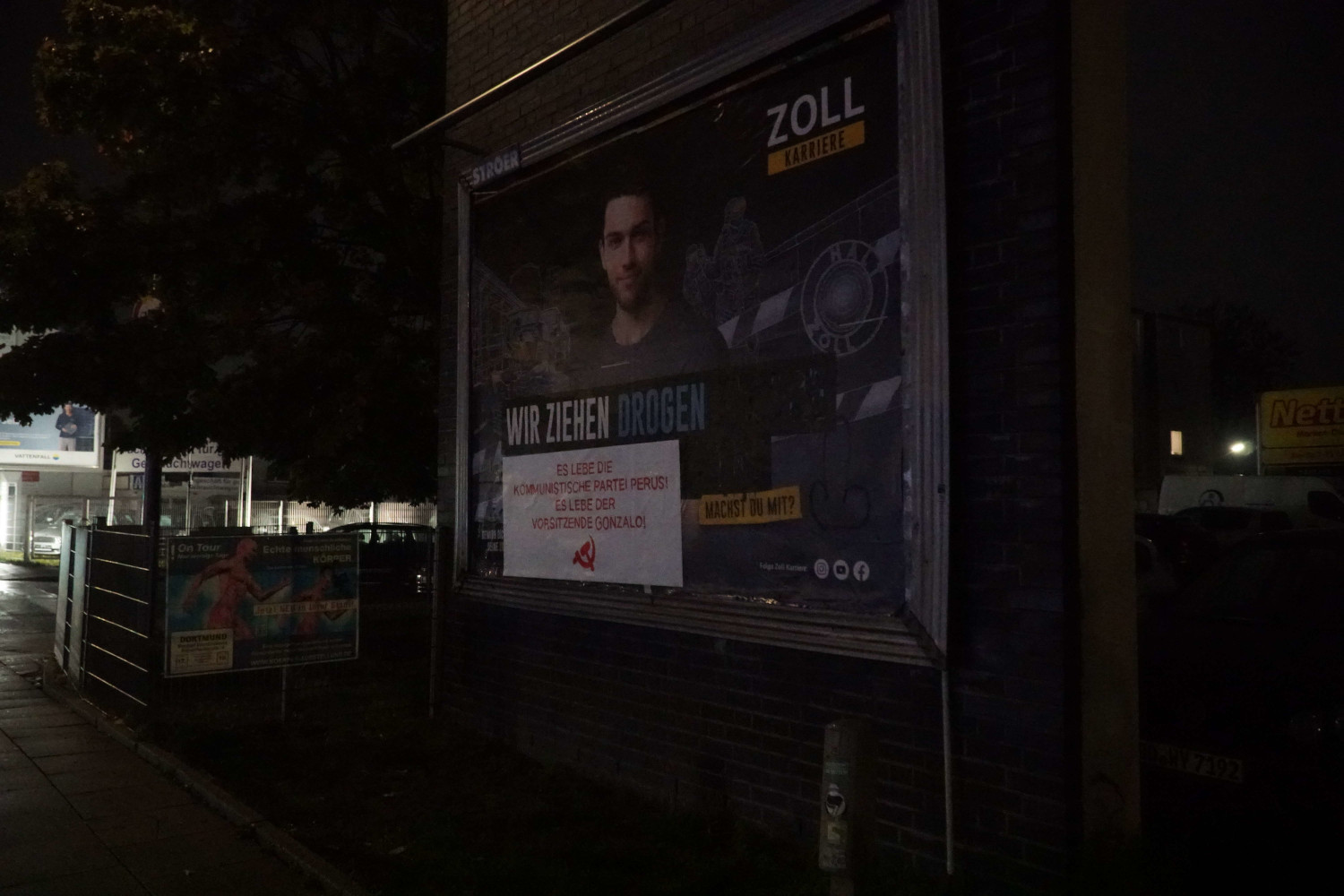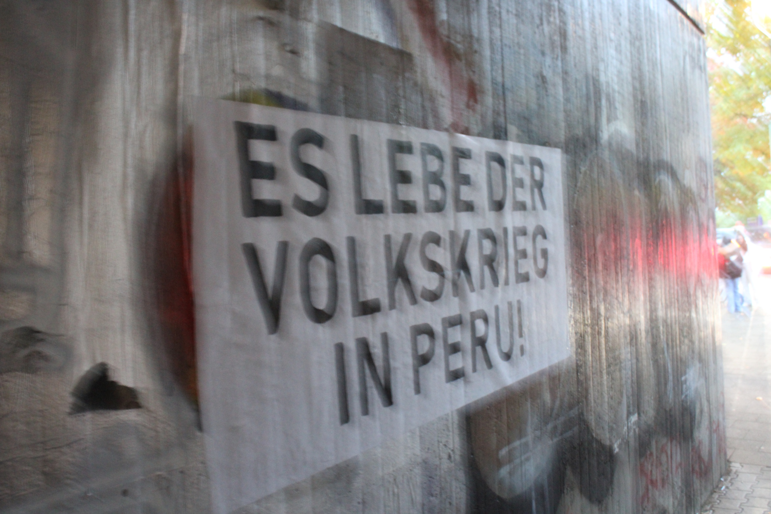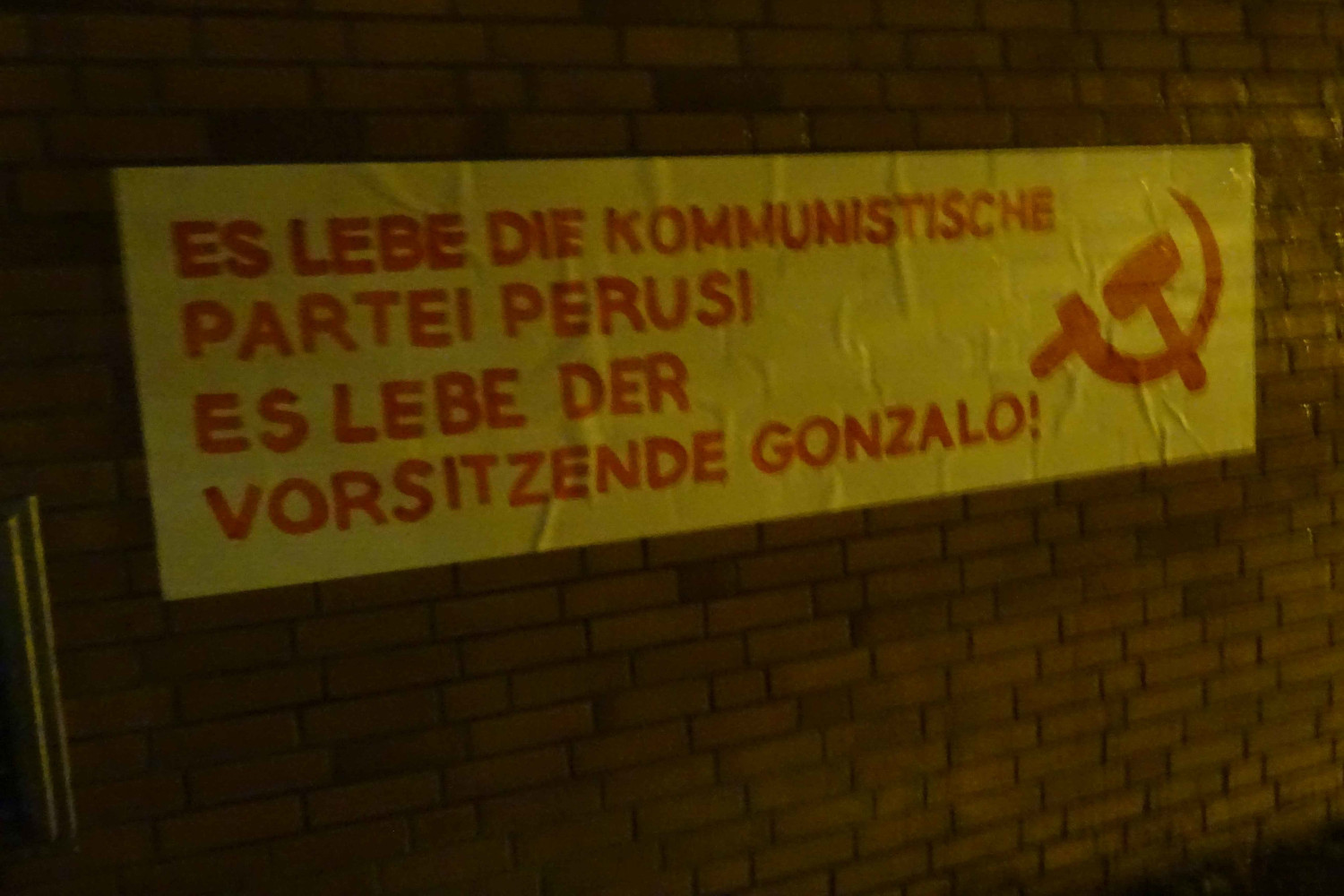Neben Aktionen in Bremen und Hamburg wurden auch in anderen Städten Deutschlands Aktionen am 7. Oktober, dem Jahrestag der Gründung der Kommunistischen Partei Perus, durchgeführt. Im Folgenden dokumentieren wir eine Auswahl von Aufnahmen von Dazibaos und Malungen zu diesem Anlass, die wir aus Leipzig, Essen, Dortmund, Düsseldorf und Köln erhalten haben.