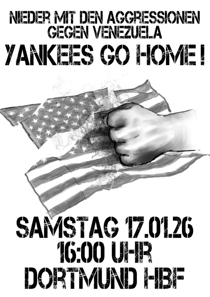 Wir rufen alle Revolutionäre, Antiimperialisten und aufrichtige Demokraten dazu auf, sich gegen die völkerrechtswidrigen Angriffe des Yankee-Imperialismus auf Venezuela und Lateinamerika zu stellen. Die fortlaufenden Aggressionen des Yankee-Imperialismus gegen souveräne Staaten, sei es in Lateinamerika in Venezuela oder unter Schützenhilfe seines israelischen Lakaien in Westasien, gegen den Iran, Jemen und Palästina müssen aufs schärfste verurteilt werden!