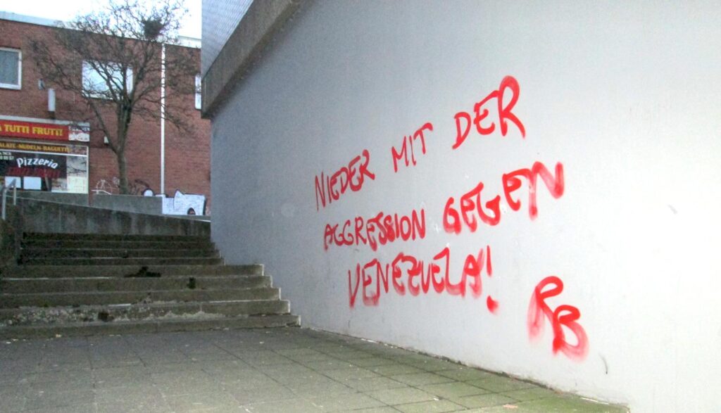 In Garath, einem proletarischen Viertel in Düsseldorf, tauchten Malungen mit den Parolen „Nieder mit der Aggression gegen Venezuela!“ und „Yankees go home!“ auf.