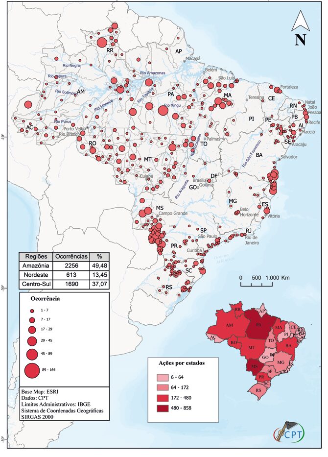 Die brasilianische Kommission für Weideland (CPT) berichtet, dass zwischen 2019 und 2023 in Brasilien 2.501 Landkonflikte mit Beteiligung indigener Völker registriert wurden – eine Zahl, die die CPT selbst als niedriger als real einräumt. Im selben Zeitraum wurden in Brasilien 161 Morddrohungen gegen Indigene und Aktivisten für ihre Rechte verzeichnet. Ein Großteil dieser Vorfälle ereignete sich in der westlichen Region Paraná, dem ursprünglichen Siedlungsgebiet zahlreicher indigener Völker, darunter die Xetá.