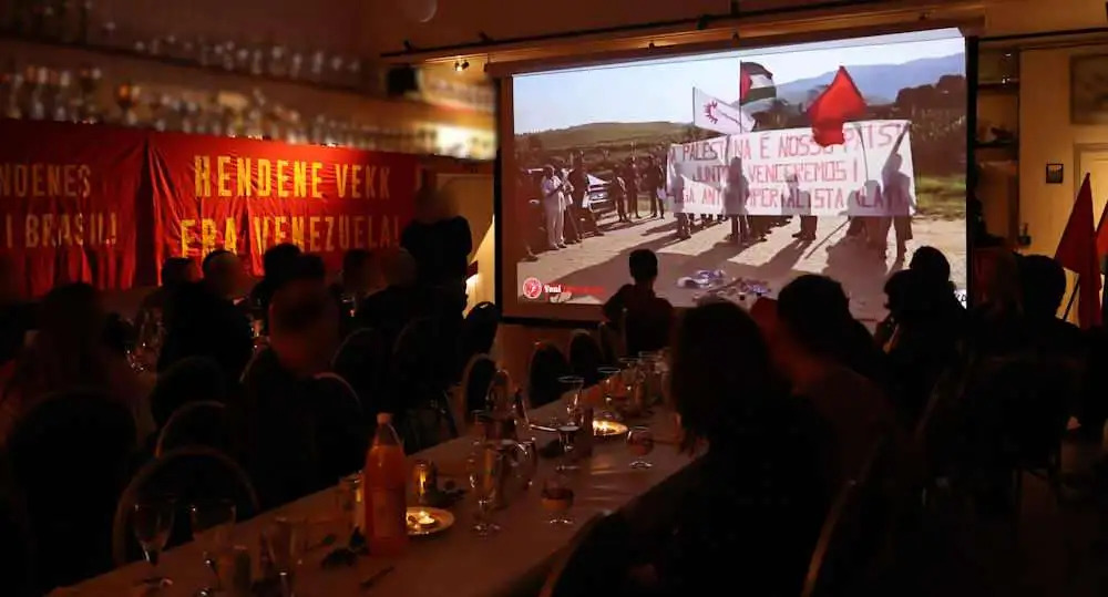 Am Samstagabend wurde eine Debatte über antiimperialistische Kooperation gehalten. Verschiedene Organisationen präsentierten ihre Ansichten, und es war eine lebendige Debatte, die sowohl durch Meinungsverschiedenheiten als auch Einstimmigkeit über verschiedene Probleme gekennzeichnet wurde. Trotz der Meinungsverschiedenheiten zwischen verschiedenen Organisationen gab es starke Einstimmigkeit darüber, dass Antiimperialisten weiter bei besonders relevanten Problemen, wie zum Beispiel Militärbasen der USA in Norwegen, gegen die NATO, in Verteidigung der Souveränität Venezuelas, gegen US-Kriege im Mittleren Osten und in Unterstützung und Verteidigung des Volks von Palästina und ihrem Widerstandskampf.