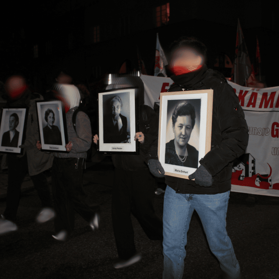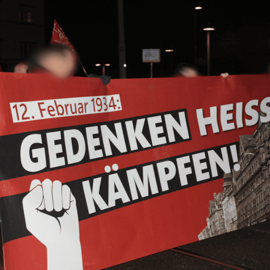 Zahlreich Bewohner der Gemeindebauten und Anreiner schauten aus den Fenstern, kamen auf die Straße, oder zeigten ihre Zustimmung durch erhobene Fäuste. Eine Demonstration, die sich der Geschichte, den Anliegen und Interessen der Arbeiterschaft widmet, ist dort offenbar gern gesehen. Denn auch heute wird die Arbeiterklasse mit Sparpaketen, massiven Teuerungen, Arbeitslosigkeit und der Aushöhlung demokratischer Rechte drangsaliert. Auch heute ist es der gemeinsame Kampf und eine revolutionäre Ausrichtung, welche Perspektive geben kann. Besonders auffallend war hier ein Flugblatt das von Aktivisten auf der Demonstration verbreited wurde und den Titel „1934 – Die Lehre. Der Kampf. – 2026“ trägt. Das Flugblatt des kommunistischen Theoriemagazins „Der Vorbote“ beschäftigt sich mit den Lehren der Februarkämpfe für heute.