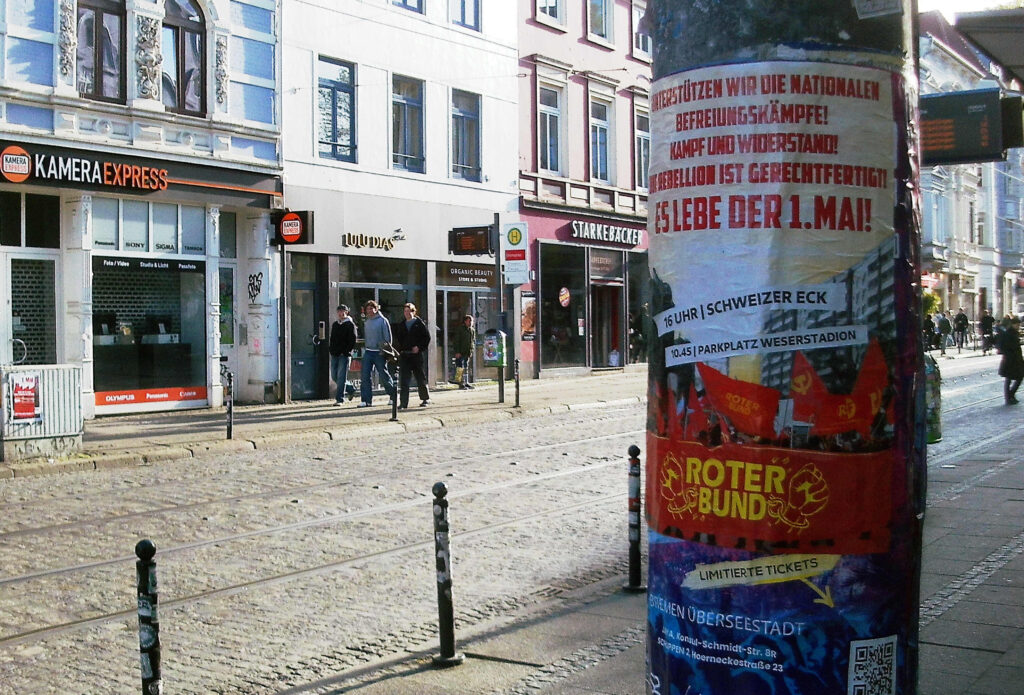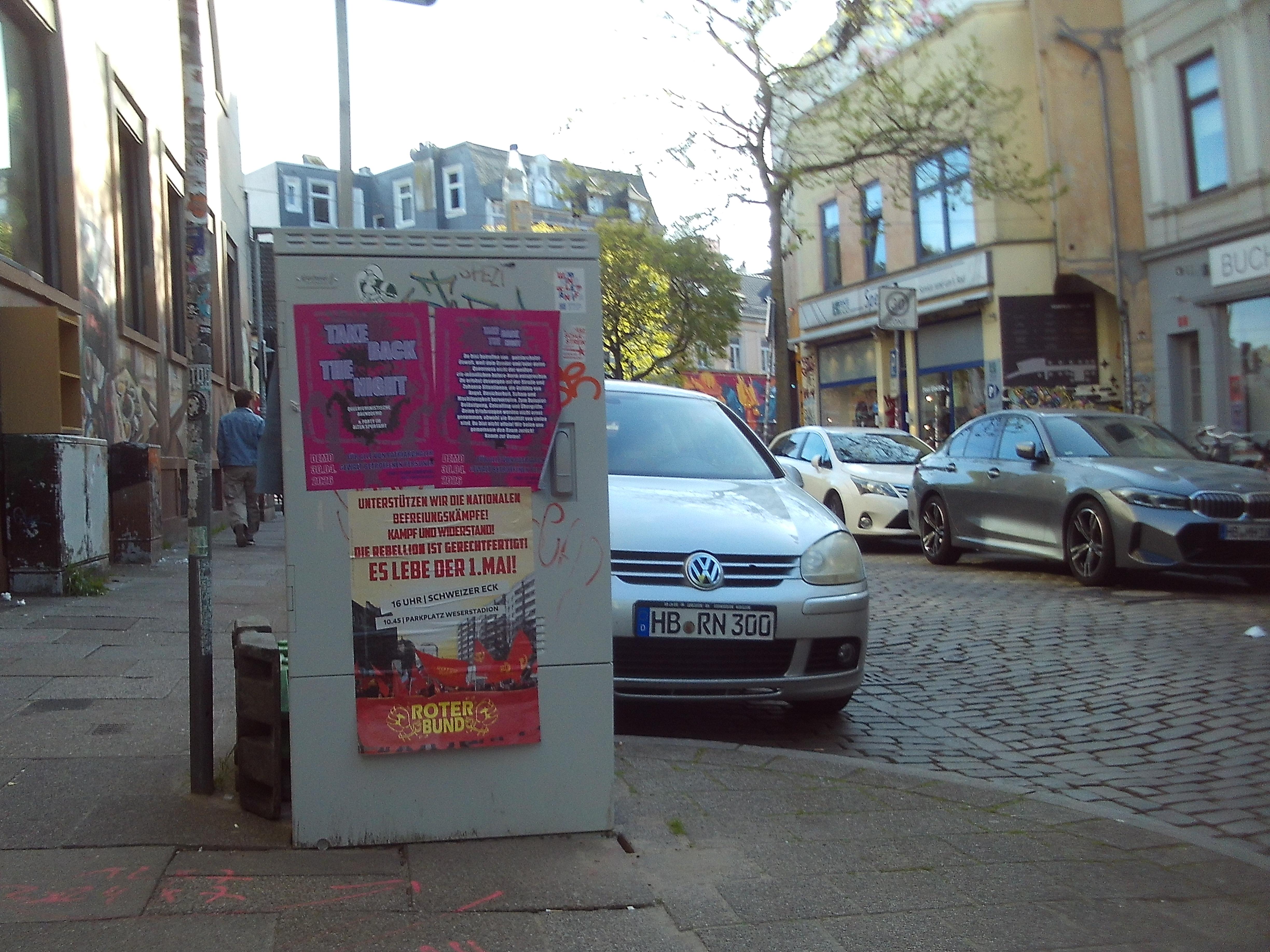 Wir teilen einige Bilder von Plakaten für den 1. Mai aus Bremen, die uns zugeschickt worden sind.