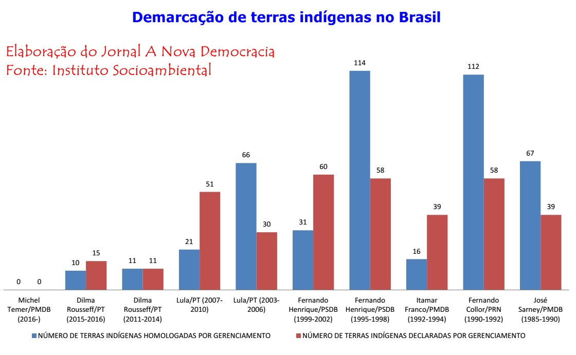 The agrarian situation sharpens and more than ever is clear that this state can offer no alternative to the right of land to the tiller and for the indigenous and quilombola peoples. The only solution that arises is the agrarian revolution as part of the new democracy revolution to sweep away definitively the rotten landlord class of the country and crush the semifeudality, present in the root of every relation of production in the country.