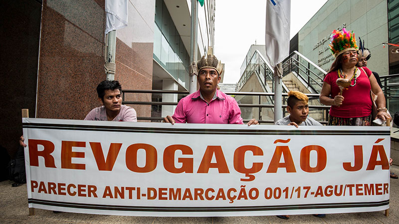 In December 6, around 90 indigenous peoples have occupied the General-Advocacy of the Union (AGU) office in Brasilia, Federal District, capital of Brazil. They demanded the revocation of the “Time Milestone” thesis in the delimitation of indigenous areas process. Also in November 23 hundreds of indigenous peoples from 17 different peoples made a demonstration in the streets of the capital.