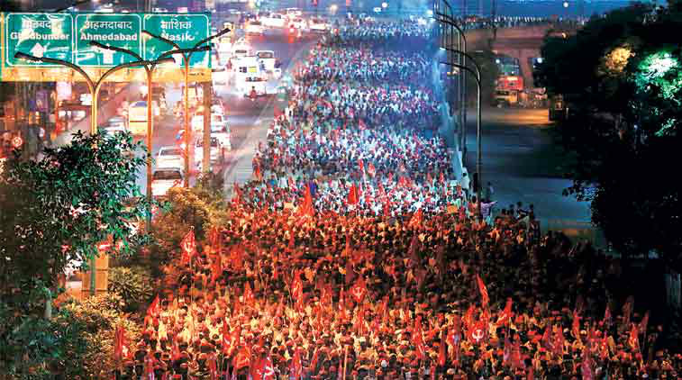 On March 6th, more than 35.000 peasants marched for 170 km from Maharashtra region to Mumbai. They reached Mumbai after 6 days bringing their demands and red flags with the hammer and sickle along the way. They were promised the fulfilment of 80% of their demands by the goverment.