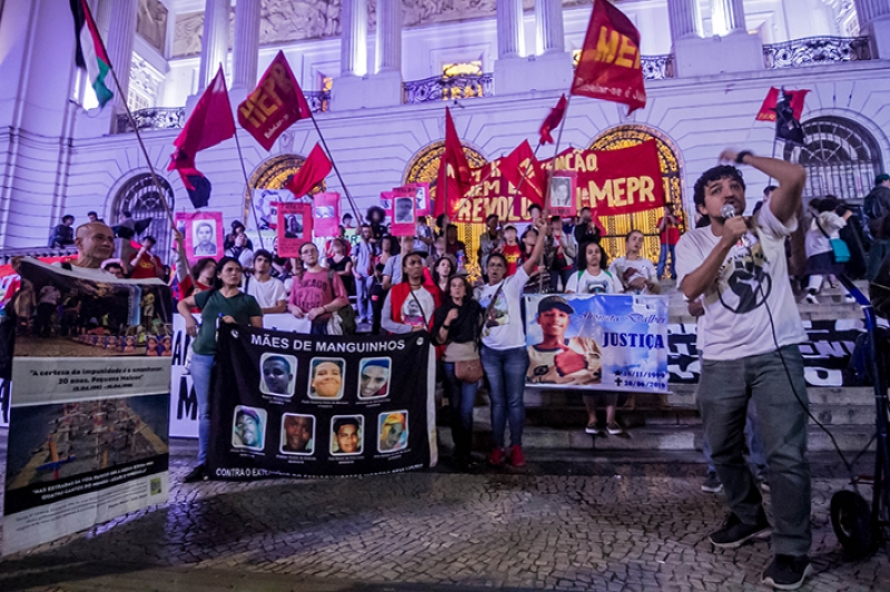 At the end of the demonstration, in front of the Counselor’s Chamber, some activists held speeches denouncing the old state for the genocide in the favelas, the pursuit of the 23 and reaffirming the path of resistance. They made an international call for solidarity for all who struggle.