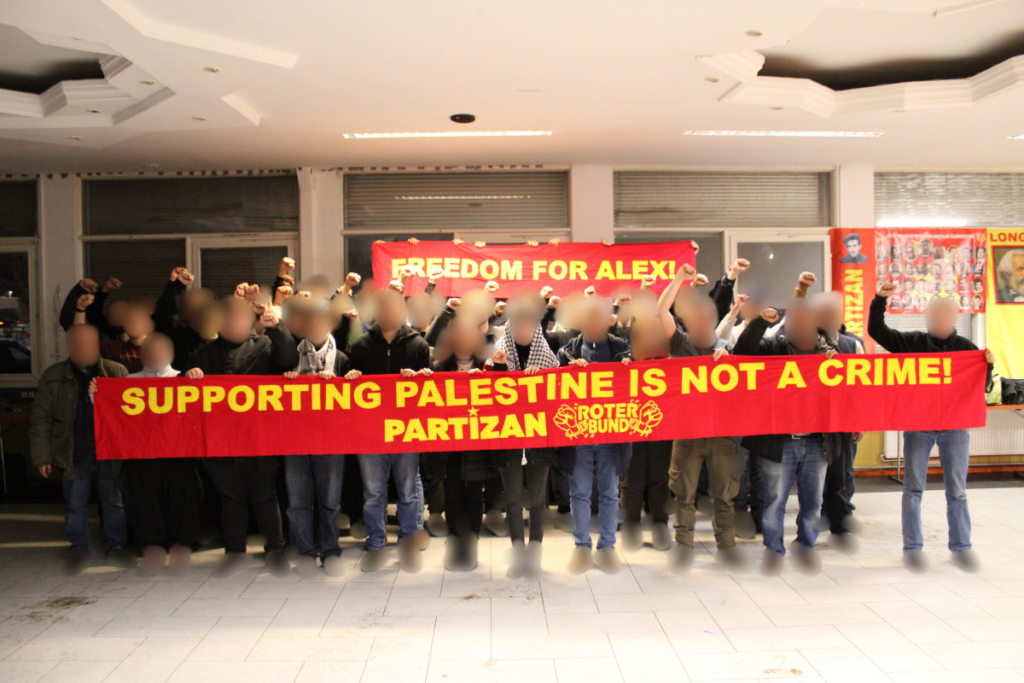 As the Red League, together with Partizan, we began the LLL weekend with a joint event on the occasion of the Week of Martyrs of the Party and Revolution proclaimed by the TKP/ML, at which, among other things, a video by Partizan about current world events was presented. Following the event, a joint photo was taken in solidarity with our comrade Alex, who is on trial in France for having resolutely supported the armed struggle in Palestine in a speech during a demonstration last year. His trial took place today, and in solidarity with our comrade, we joined the international campaign, which included actions in Finland and Spain, among other places.
